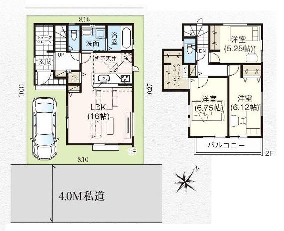 | 間取詳細 | (1階)LDK16.0、(2階)洋6.75、(2階)洋6.12、(2階)洋5.25 | 築年月 | |