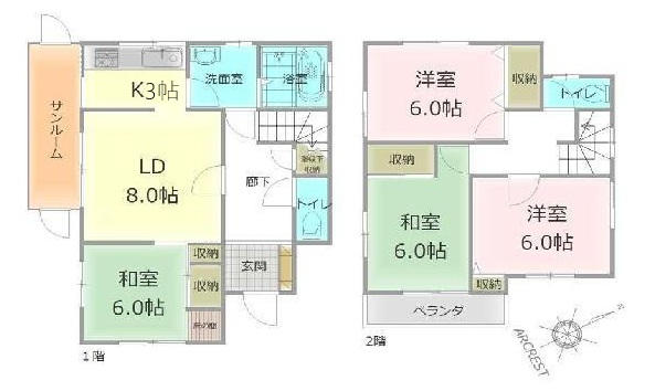 | 間取詳細 | (1階)LDK11.0、(1階)和6.0、(2階)和6.0、(2階)洋6.0、(2階)洋6.0 | 築年月 | 1996/01 |