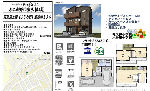 コメント | 『仲介手数料無料物件!』キャンペーン対象物件 新築戸建てです。 周辺施設 かすが保育園まで約350m 新双葉幼稚園まで約530m 生鮮市場TOP鶴ケ舞店まで約610m セブンイレブン大井東久保北店まで約500m ※現地販売業者さんは全て売主さんというわけではありません。アンケート等の手続きをされますと当社での物件紹介(仲介手数料無料)ができなくなります。内覧を希望のお客様は当社にて立会い・ご案内をさせて頂きますのでお手数ですが TEL049-293-4463/090-4835-4987までお電話ください。 急いで現地へ向かいますのでご連絡をお待ちしております。 |