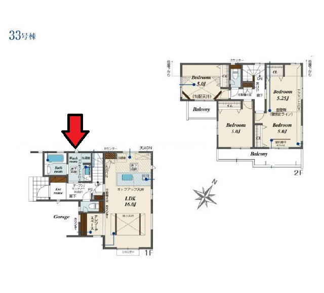 | 特色 | 【戸建て】2階建て、公営水道、公共本下水、ペアガラス、トイレ2ヵ所、浴室乾燥機、システムキッチン、浴室1坪以上、都市ガス、食洗乾燥機、駐車場、サニタリー1坪以上、保育園(1キロ圏内)、コンビニ(徒歩10分以内) |