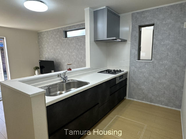 【戸建て】2階建て、駐車場、公営水道、公共本下水、都市ガス、フラット35、システムキッチン、ペアガラス、トイレ2ヵ所、浴室1坪以上、サニタリー1坪以上、保育園(1キロ圏内)、コンビニ(徒歩10分以内)