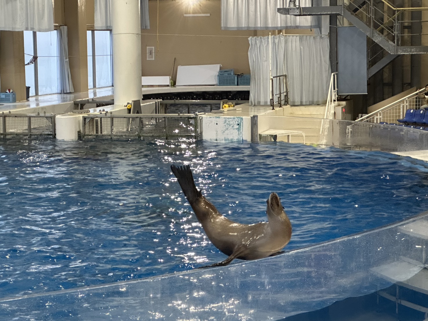 念願のイルカショーにはアザラシも頑張っていました。
