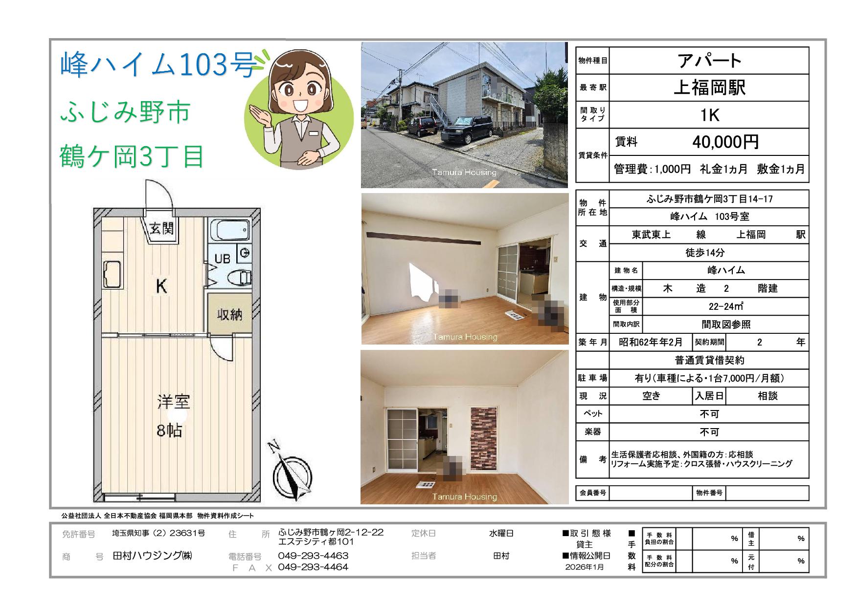 建物名:峰ハイム 103号室