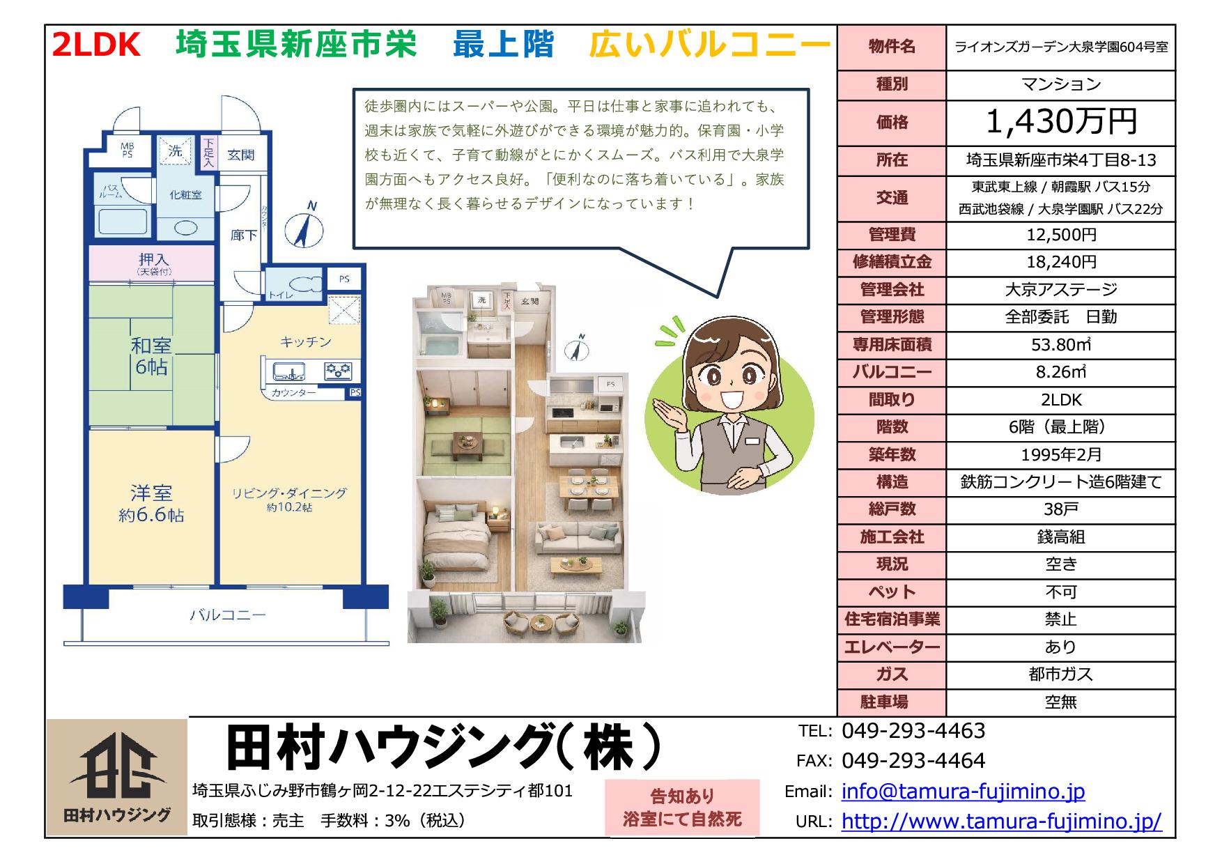 田村ハウジングより中古マンションの物件情報をお知らせします。
